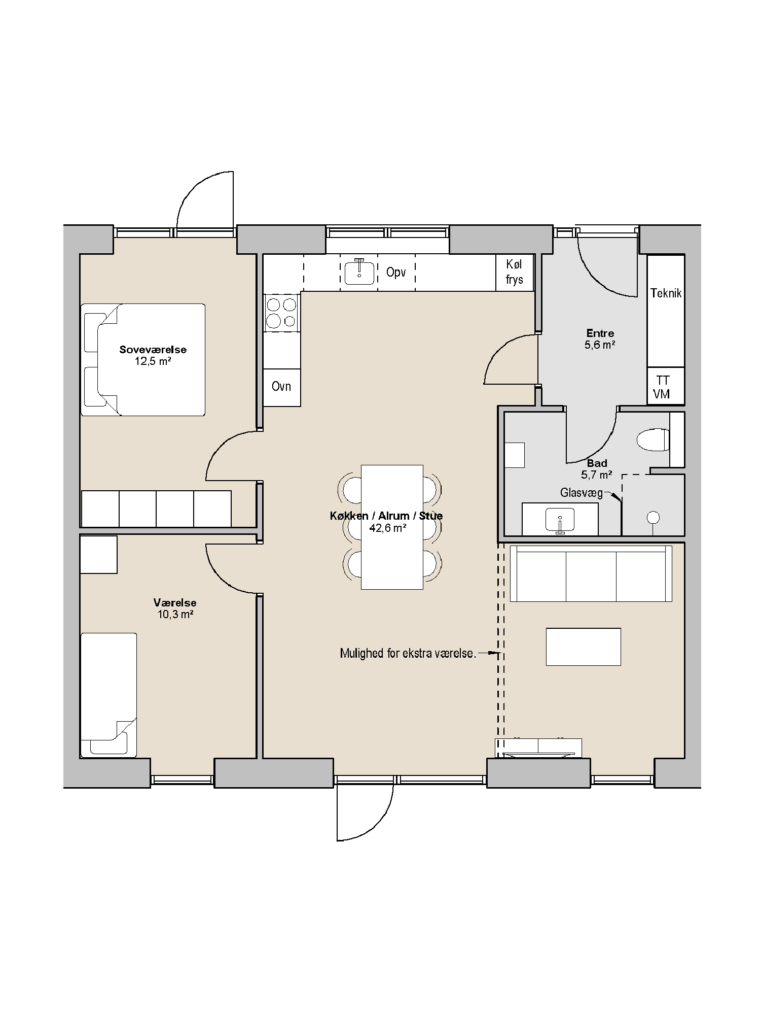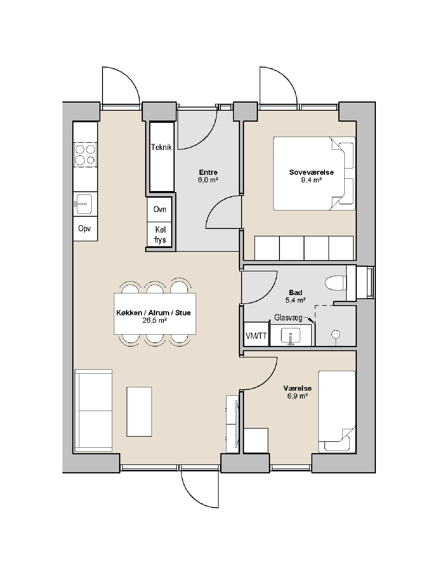 Stjerneparken tilbyder en række forskellige boliger på 77 til 113 m² med 3- til 5 værelser, klar til indflytning allerede fra 15. januar 2026.